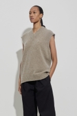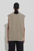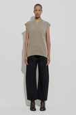 Жилет Christian Wijnants виготовлений з високоякісної вовни. Має V-подібний виріз, що надає силуету витонченості. Виріз та низ оформлені в рубчик, що додає текстурності та легкого акценту. Вільний крій робить модель універсальною - легко комбінується з сорочками та лонгслівами для створення багатошарових образів. Теплий, м'який на дотик і водночас стриманий у кольорі - базовий елемент гардероба на прохолодну пору року.