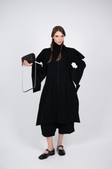 Yohji Yamamoto - легендарний японський дизайнер, який руйнує канони моди та створює виразний, сміливий та завдяки цьому завжди сучасний стиль. Його колекції поєднують історичну спадщину, новаторство та сміливі дизайнерські прийоми, перетворюючи кожну річ на справжній арт - об''єкт.Подовжений жакет на гудзиках з асиметричним низом створює легкий рух і витончену динаміку силуету. По боках та ззаду виконані розрізи, що додають модної легкості та акцентують крок. Багатошарові рукави з красивою грою об'єму завершені широкими манжетами. Тонка вовна м'яко тримає форму і виглядає благородно. Такий жакет підкреслює жіночність та вишуканий стиль.