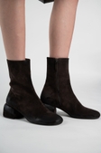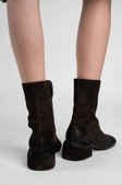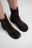 Вишукані черевики із замші насиченого коричневого кольору з легким ефектом потертості, що додає образу характеру та стилю.