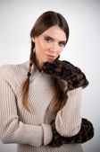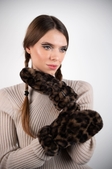 Apparis представляє на 100% веганські та етичні вироби. Швидко завойовує світ моди завдяки популярності своїх курток зі штучої шкіри. Колекції - класичні вироби, яскраві моделі. Стиль - ненав'язливий шик Парижа з легким флером Нью-Йорка. Мода може бути екологічною та етичною.Леопардові рукавички зі штучного хутра з функціональним розрізом. Завдяки цьому їх можна носити - як закриті рукавички для тепла або як мітенки з відкритими пальчиками для зручності. Комфортні, стильні та ефектні, додають образу яскравого акценту.