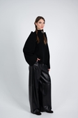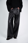 Склад: 100% натуральна шкіраКолір: чорнийСилует: вільний, широкийПосадка: високаПояс: еластичнийЗастібка: блискавка спередуДовжина: повнаВироблено в Італії