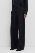 Christian Wijnants - бельгійський дизайнер, який здобув популярність завдяки своєму інноваційному підходу до текстилю, поєднанню кольорів і складному драпіруванню. Джинси з щільного темно-сірого деніму. Модель з високою посадкою та застібкою на гудзик і блискавку. Має п'ять кишень - дві спереду, одну монетницю та дві накладні ззаду. Злегка об'ємні у стегнах і трохи завужені донизу, що створює м'який округлий силует. Тканина матова без потертостей, виглядає стримано й сучасно. Такі джинси легко поєднуються як з базовими светрами та футболками, так і з жакетами або сорочками для більш вишуканого образу.