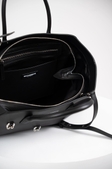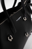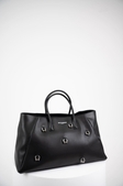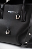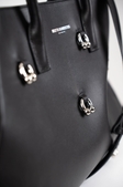 Ця об'ємна шкіряна сумка виконана у фірмовій естетиці Melitta Baumeister, де мінімалізм поєднується з арт-об'ємами та нестандартними конструктивними акцентами. Головную деталлю дизайну є металеві елементи, стилізовані під пірсинг, розташовані по всій площині- вони створюють виразний , майже скульптурний характер виробу та підкреслюють авангардний підхід бренду.М'яка, але щільна шкіра формує графічний силует, який тримає форму, а подовжені регульовані ремінці додають можливість носіння у різних варіаціях. Подвійні дугоподібні ручки роблять сумку зручною для носіння в руках, зберігаючи при цьому ії статусність.