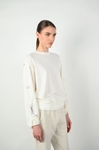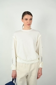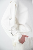 Світшот із 100% м'якої бавовни, в молочному відтінку, прямого крою з округлою горловиною. Головний акцент-металеві елементи і ремінці на рукавах, що надають виробу характерного стилю Undercover і додають йому сучасного вигляду.