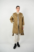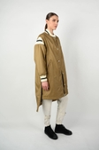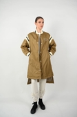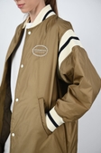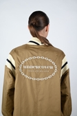 Undercover відомий поєднанням стрітстайлу з авангардною модою. Бренд здобув міжнародне визнання завдяки своєму унікальному стилю - інтелектуальному, провокаційному й завжди непердбачувальному.Легкий бомбер-оверсайз від Undercover гірчичного кольору. Модель має прямий подовжений силует з бейсбольною естетикою. На грудях та спині розташовано фірмовий логотип "Undercover" із написом "CHAOS AND BALANCE", що символізує з'єднання протилежностей - філософія бренду. Рукави та комір оздоблені трикотажними манжетами в чорно-молочній гамі, які додають яскравості та спортивної динаміки. Об'ємний рукав, спущена лінія плеча і вільний крій створюють розслаблений образ. Ідеальний варіант для поєднання з денімом, кедами або грубими черевиками.
