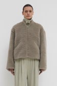 Christian Wijnants в своїх колекціях поєднує складні драпірування, експериментальні силуети та авторські принти. Натхненням для нього часто стають мистецтво та природа.Хутряна куртка у стилі бомбера виконана з м'якої вовни бежевого кольору. Матеріал має приємну ворсисту фактуру, що створює ефект штучного хутра - теплий і затишний. Модель має укорочену посадку та застібку-блискавку, а ніжний бежевий відтінок надає виробу елегантності. Прорізні бокові кишені додають практичності. Ця куртка поєднує в собі розкіш хутра і невимушений стиль бомбера - ідеальний вибір для сучасних образів у холодний сезон.